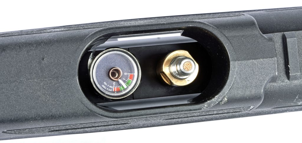 Filling is via a quick fill Foster fitting, which is found on the underside of the fore grip right next to the fill gauge. I must add that there is no female Foster fitting supplied with the rifle, but that’s because most whips these days come with a female Foster end as standard.