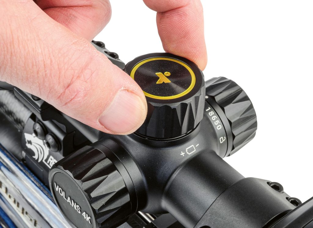 While the buttons on the control module provide a quick-and-easy route for the scope’s features, the really deep-dive stuff comes courtesy of its top turret – the V850’s “command dial”.