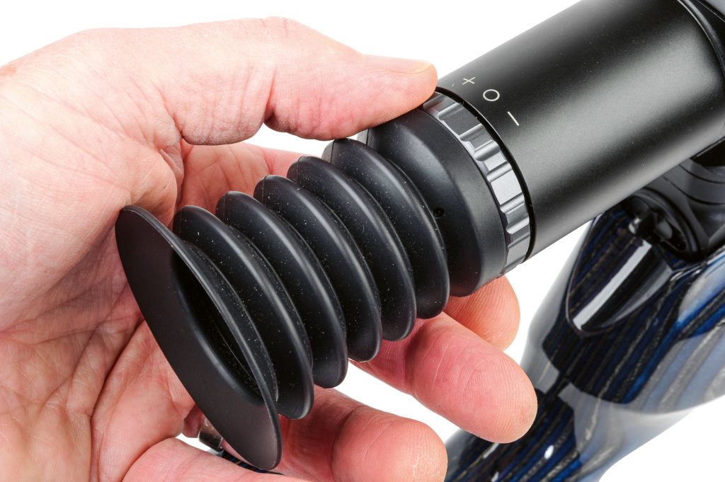 Dioptre focus: +/- 3.0. Eyepiece includes concertina eyecup
