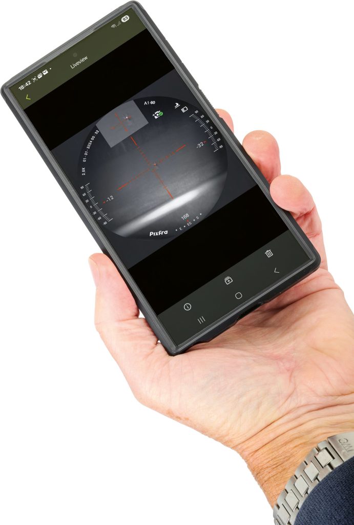 Recording: Video (with audio) at 50Hz (.mp4 format); Still image (.jpg format). Video can be auto-started on recoil. Scope image display can be live-tethered to smartphone via free Pixfra Outdoor app (available on iOS/ Android)